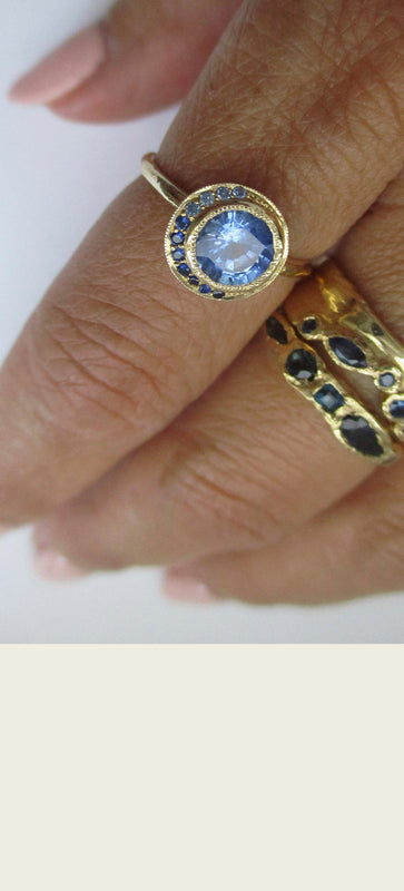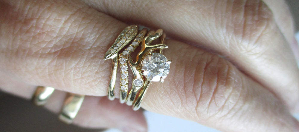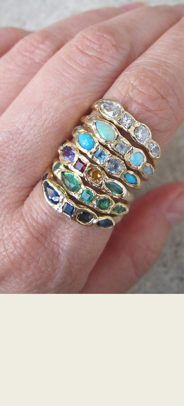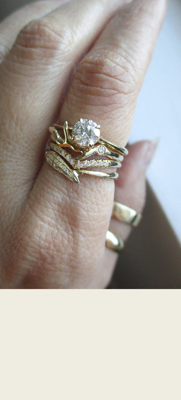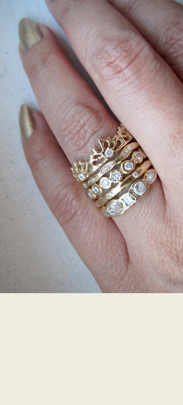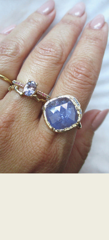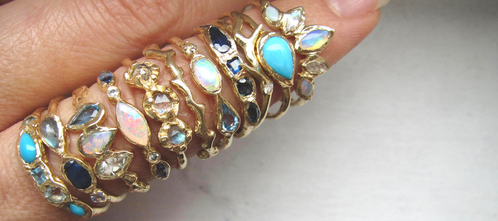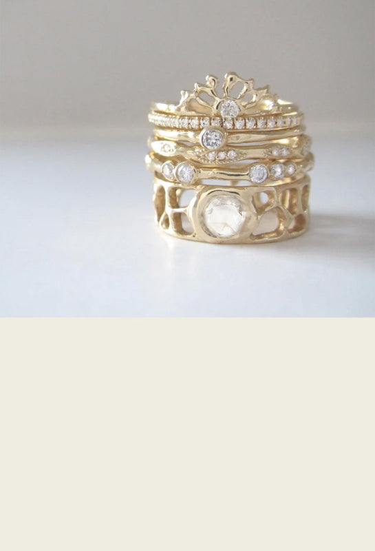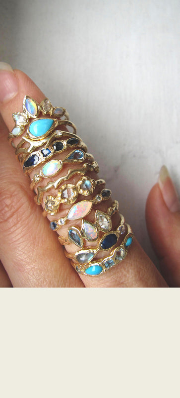 Our gemstones are ethically sourced from our reputable partners and individually hand-selected for each of our designs. Our diamonds are conflict-free and compliant with the Kimberley Process. We use recycled gold for our jewelry and reuse every bit of the gold metal left behind during the casting process to create jewelry components in our studio. We aim to be environmentally-focused with each decision our company makes.