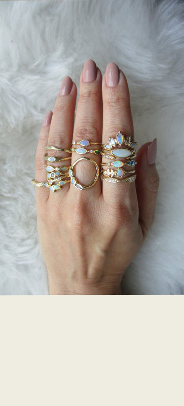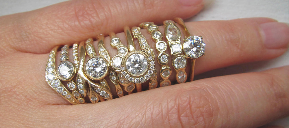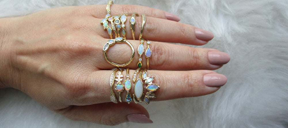 Our gemstones are ethically sourced from our reputable partners and individually hand-selected for each of our designs. Our diamonds are conflict-free and compliant with the Kimberley Process. We use recycled gold for our jewelry and reuse every bit of the gold metal left behind during the casting process to create jewelry components in our studio. We aim to be environmentally-focused with each decision our company makes.